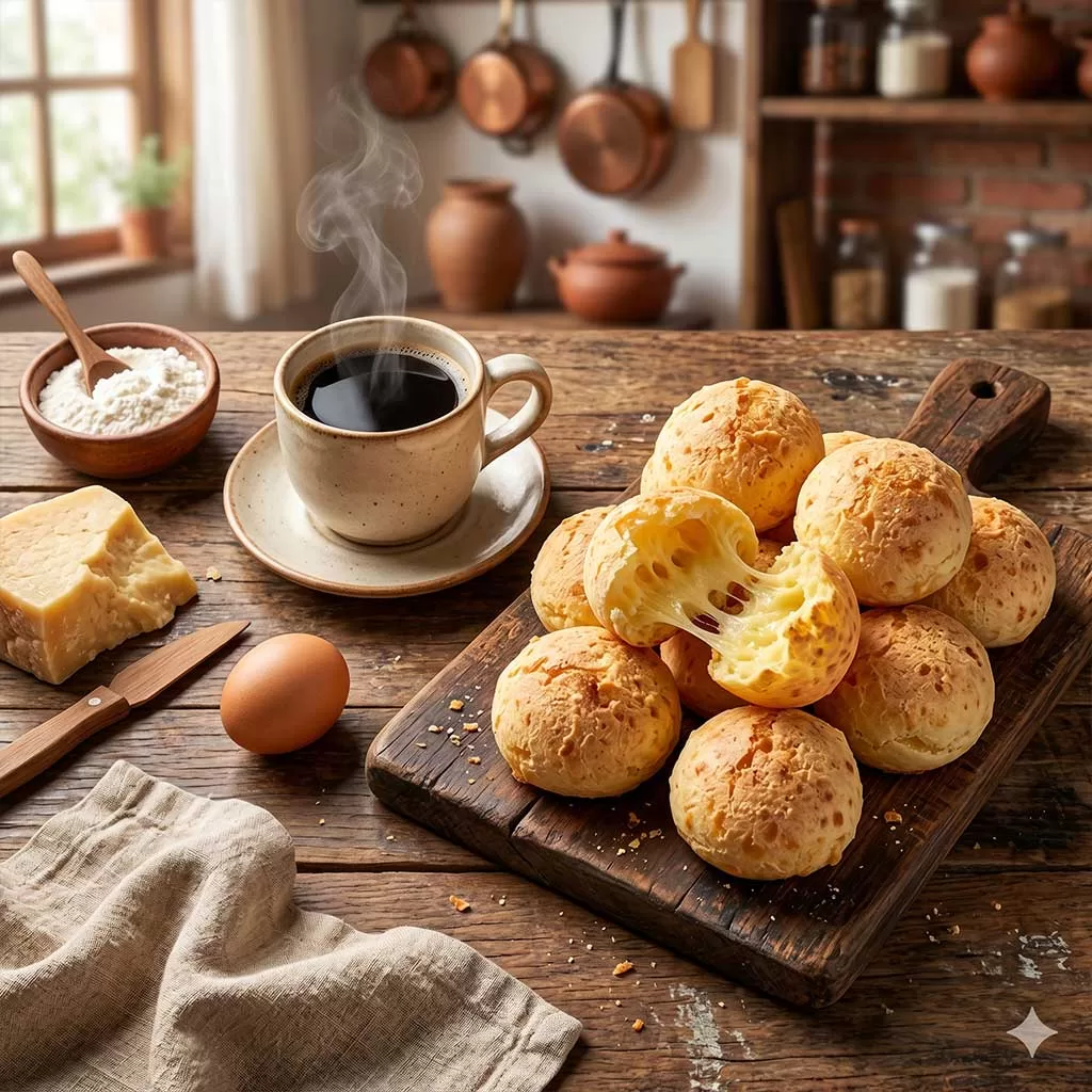 O clássico mineiro com queijo Minas curado, polvilho azedo e crocante por fora, puxa por dentro